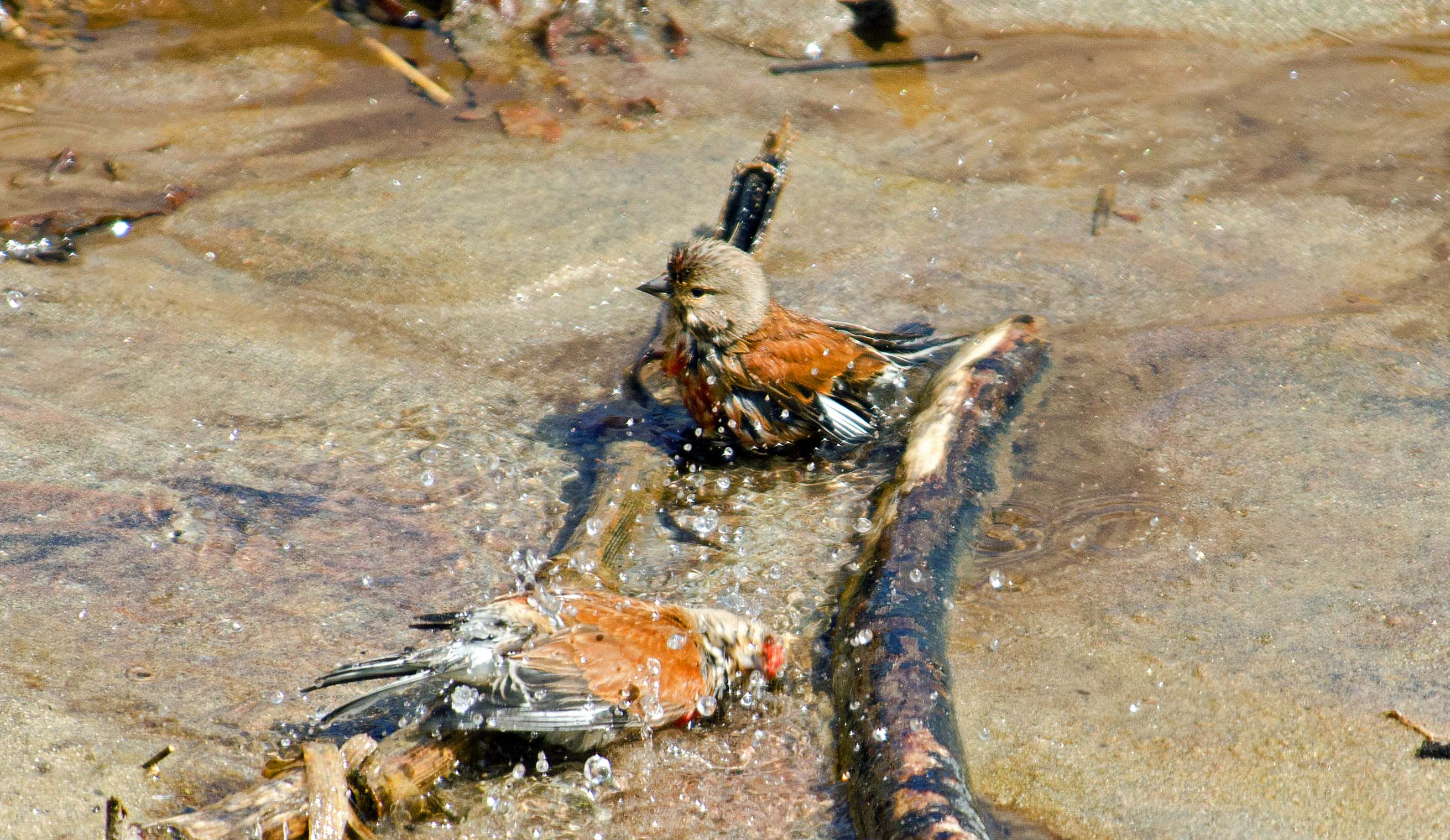 Linnets (Pardillo in Spanish) are quite common in Spain, and flocks can be seen throughout the year along both sides of the Ria Ortigueira. These birds were bathing and preening in late April.