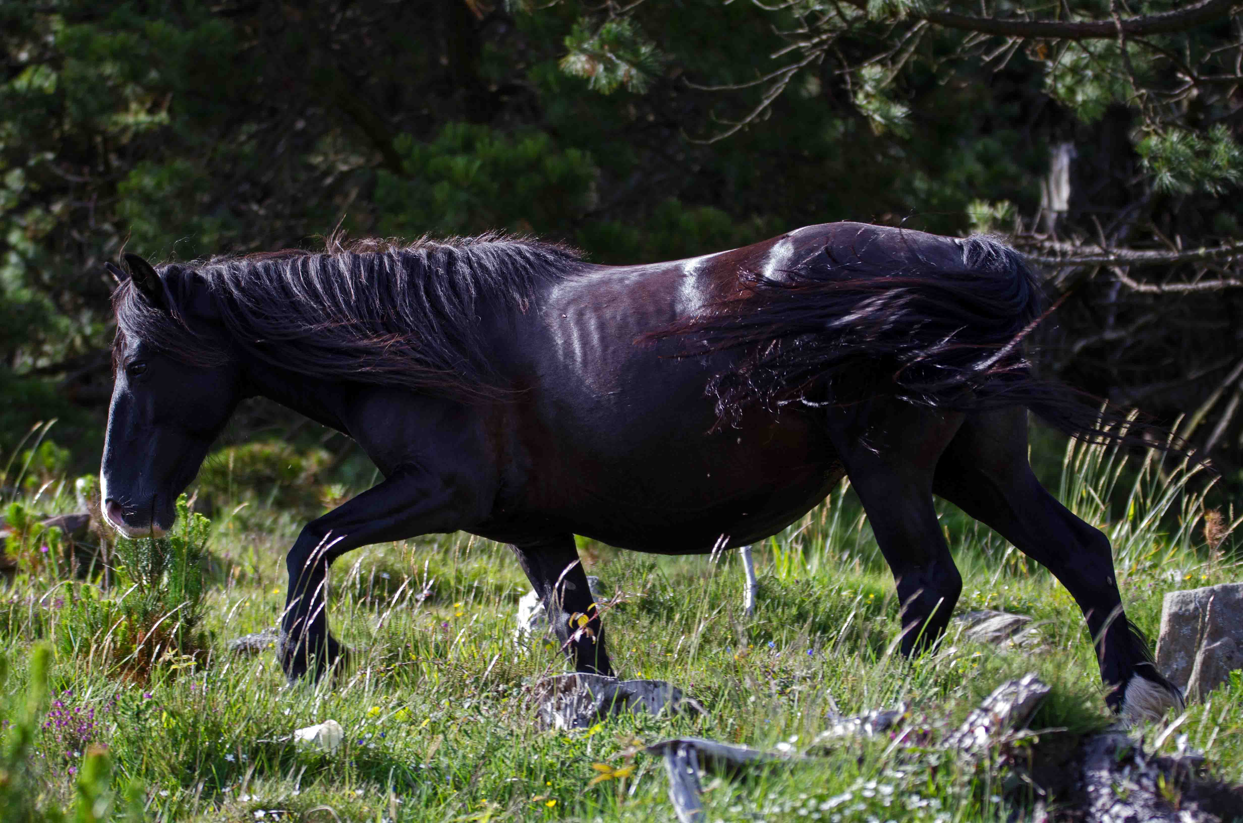 They were traditionally bred for meat and horse hair (which was used for brushes), but they are now mostly used for riding or simply as a tourist attraction decorating the hill sides. Many are however, not tame. Although quite tolerant of people, in my experience of trying to take photographs of them, they can be shy, but very protective of their foals.