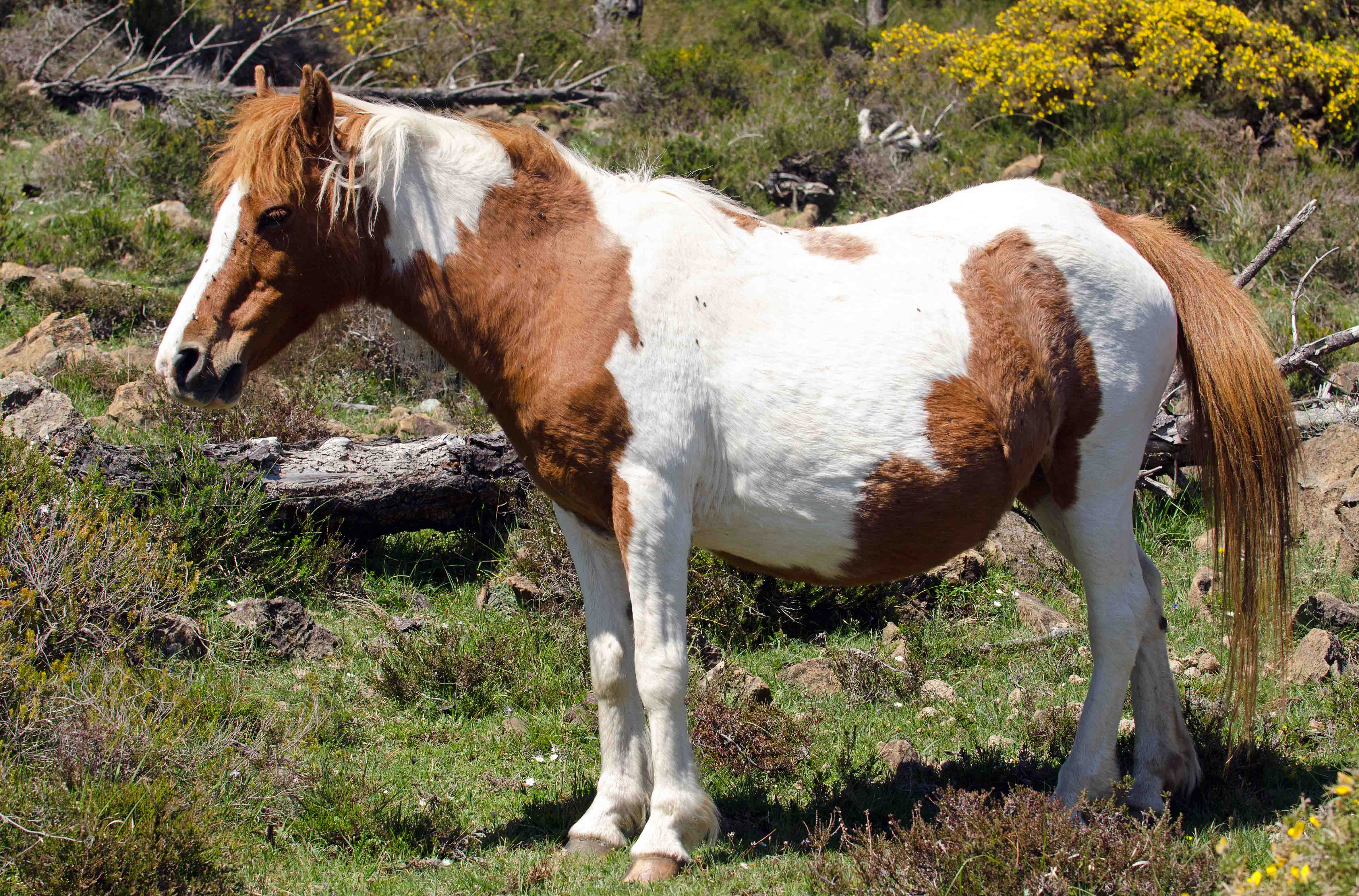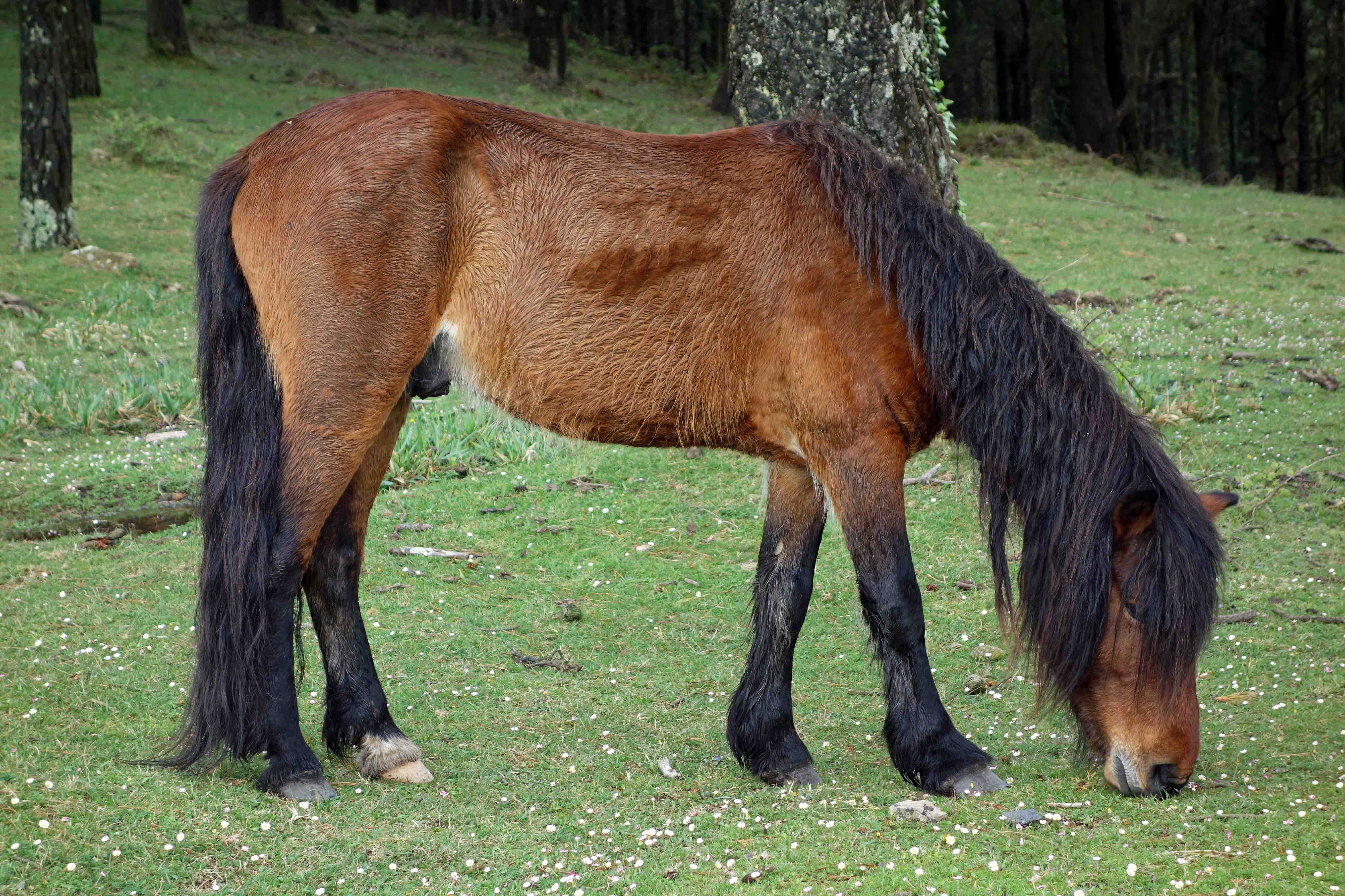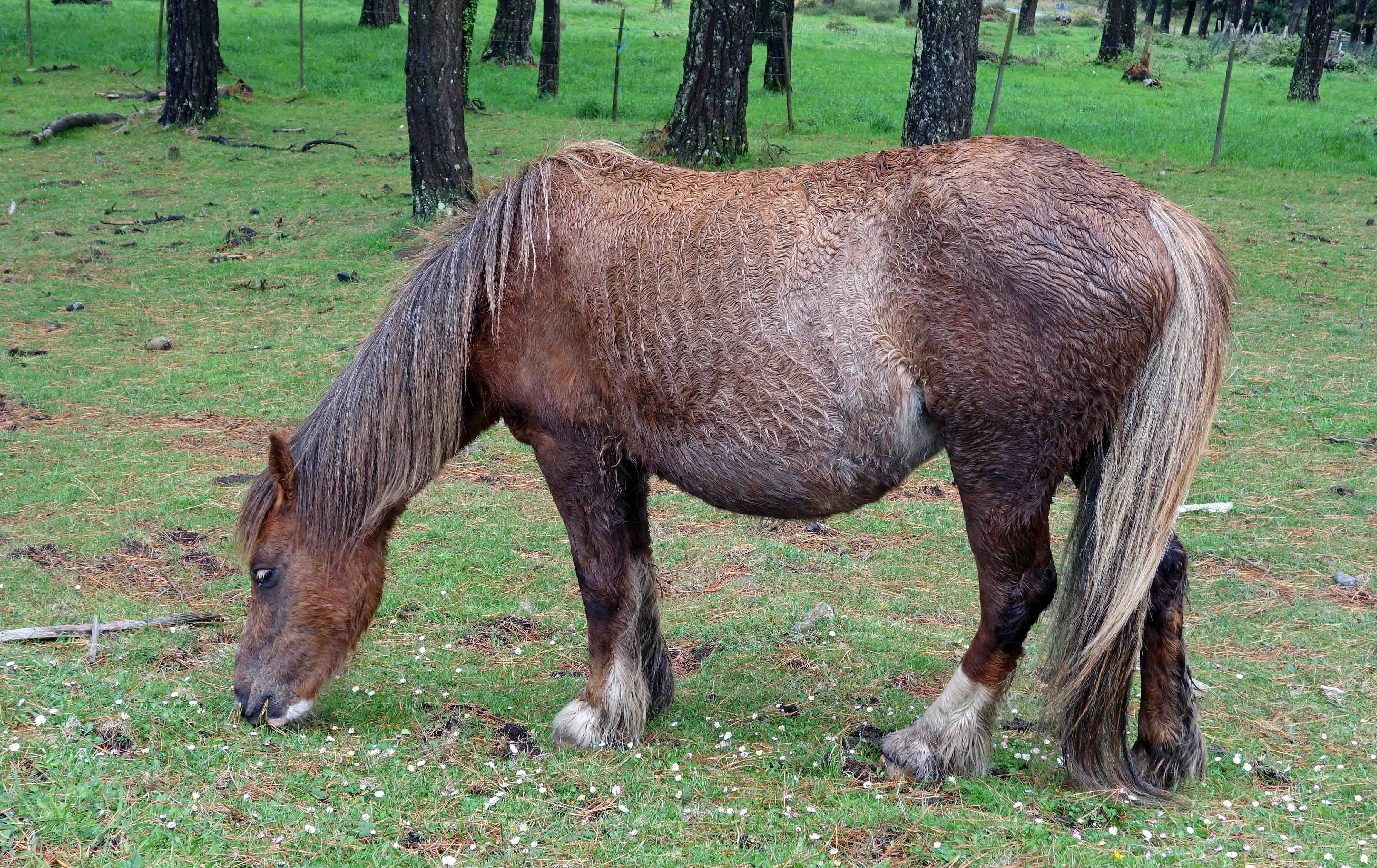 Galician ponies are a hardy breed of short-bodied, semi-feral horses which live on the mountains of Galicia, in NW Spain. They are said to be derived from a mixture of Celtic horses, Roman horses and horses brought to Spain by ancient Germanic tribes (the Swabians), and subsequently cross-bred with other breeds. They are however, superbly adapted to the rugged conditions found on the hills of Galicia, often clad in shaggy coats, highly resistant to the rain and mists of this Atlantic climate.