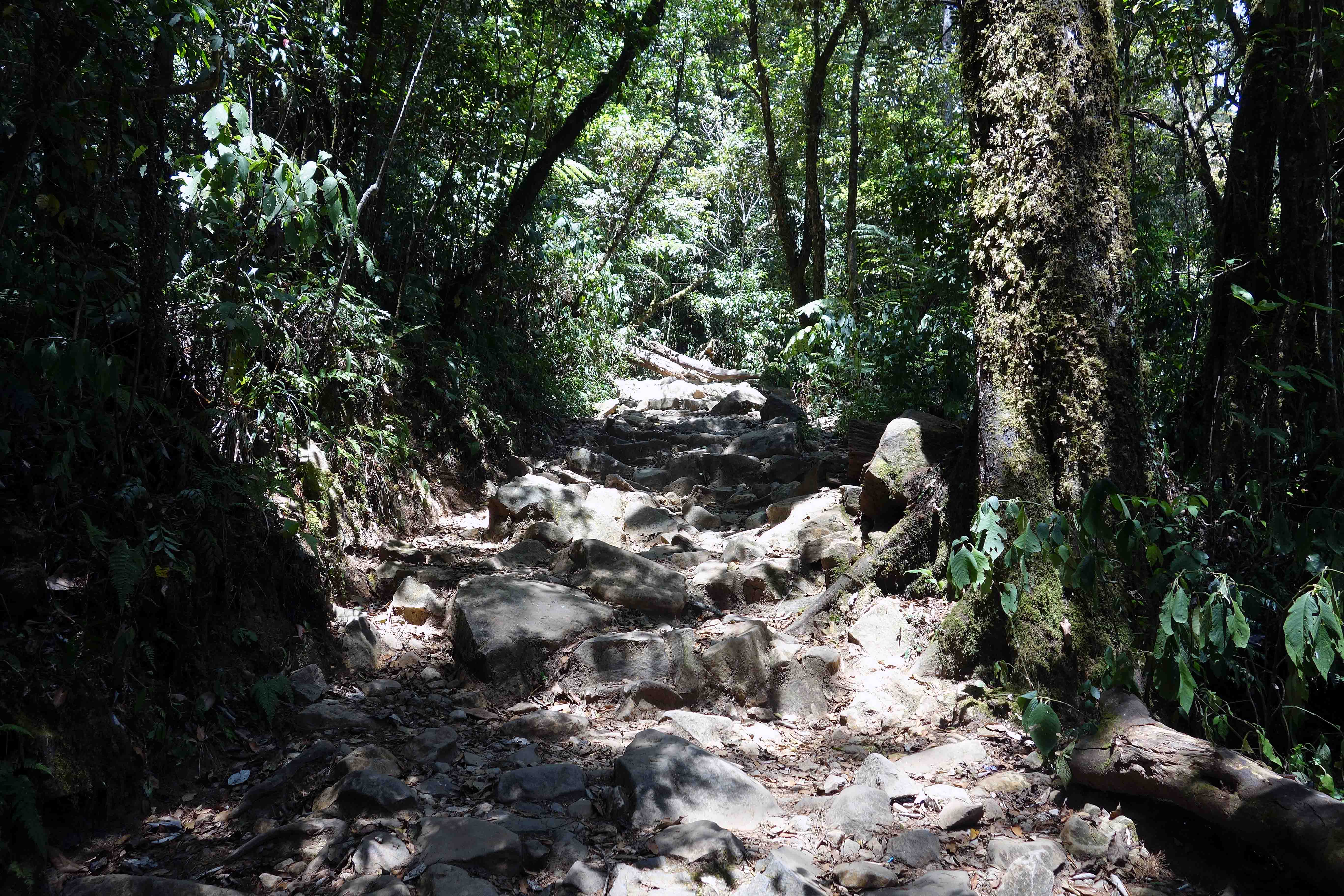 After the turn-off to the waterfall, the trails becomes ‘narrow, rugged and steep’ as Wallace described it (1). The path is very rocky and someone must have laboured long and hard to construct this access way to the peak.