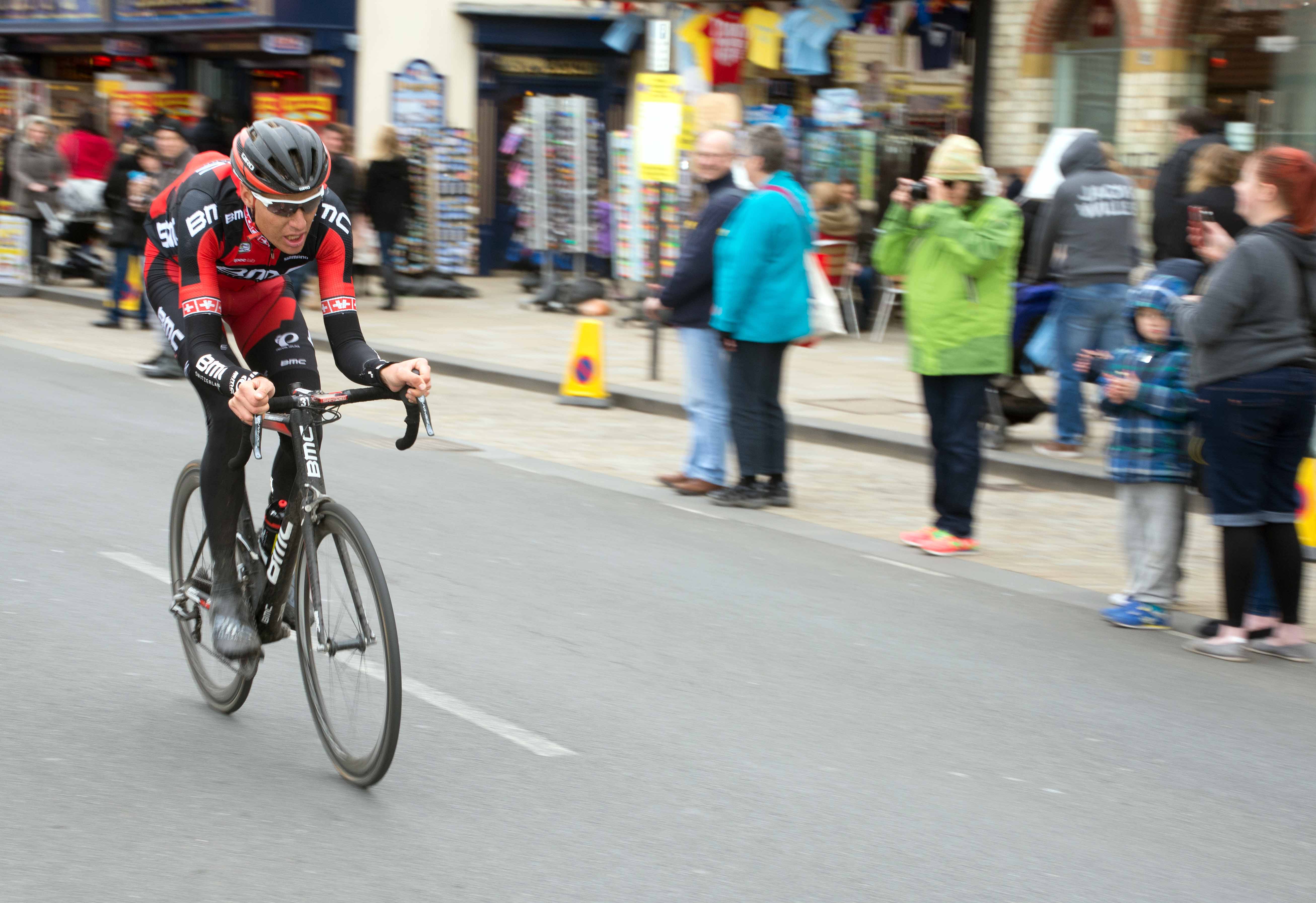 It was a cold and windy day and the riders must have been exhausted after the gruelling ride, which included six hill climbs. Despite this, there was still a sprint to the finish and only six seconds between the race winner – Frenchman Thomas Voeckler – and the Irish rider Nicolas Roche who came second in this stage. I managed to grab this shot as the two front riders passed beside the harbour in Scarborough, a couple of kilometres from the finish.