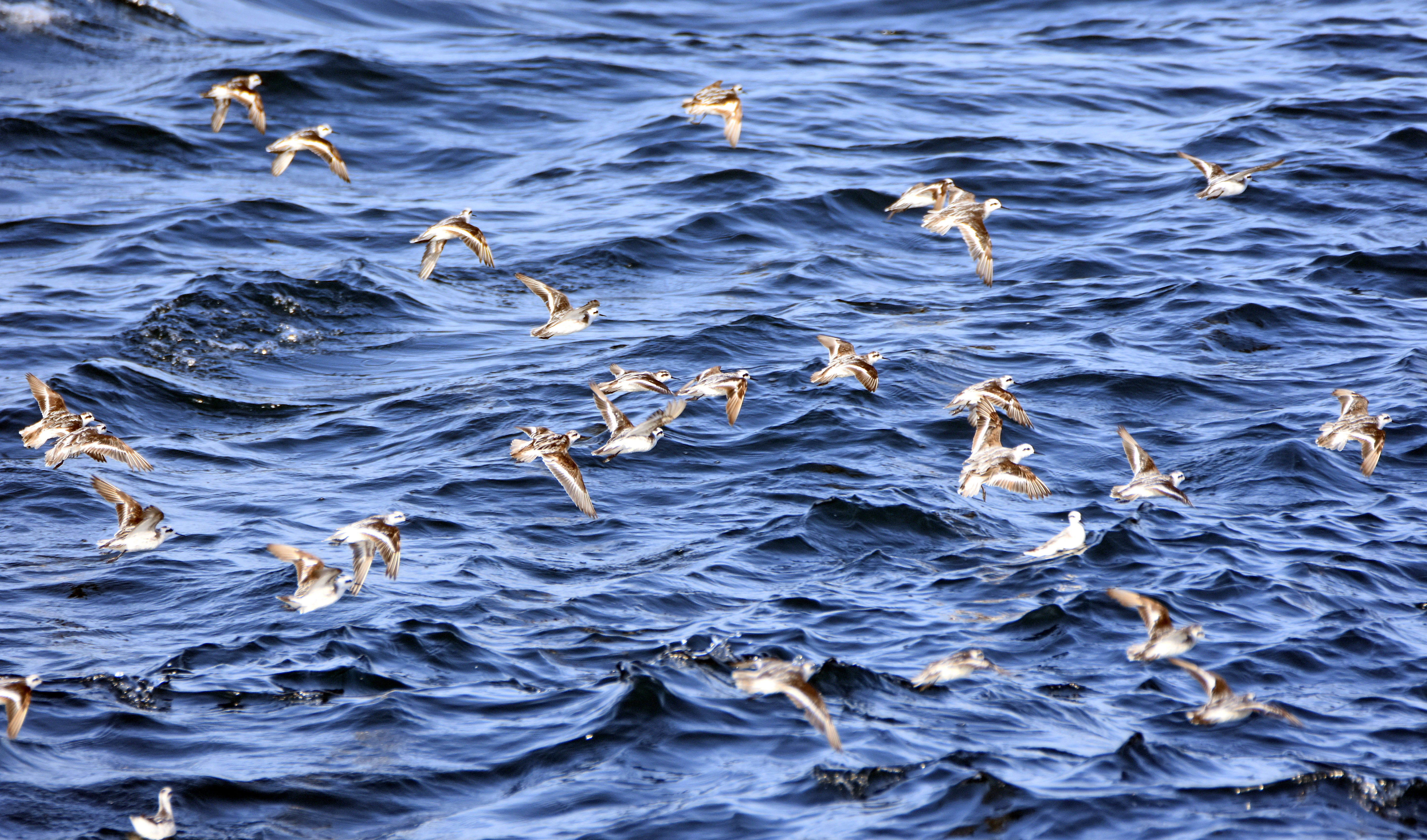 There were also lots of sea birds, especially Red-footed and Brown boobies, which I will save for a separate blog! One species which was very abundant, was the red-necked phalarope (Phalaropus lobatus). This little wader spends the northern winter in these tropical waters and we came across flock after flock of these birds (below). They seemed to me to be wonderfully adapted to oceanic life, bobbing away on the surface, pecking at tiny marine invertebrates.