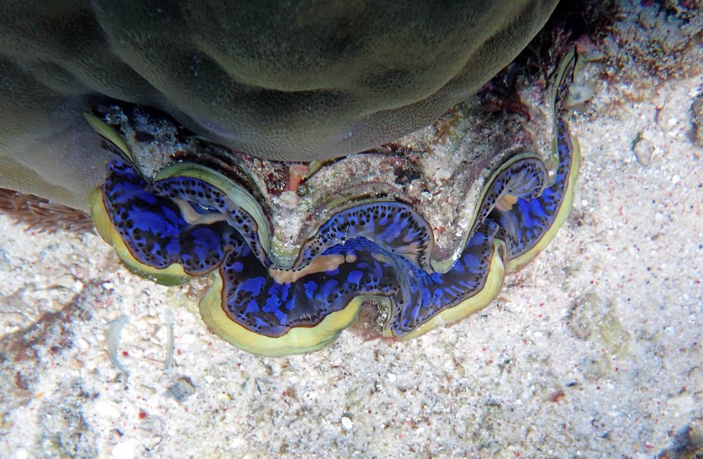 It was fun to see some giant clams. Some of them are so tightly cemented onto the coral that all you see is the beautiful soft mantle undulating along the rims of the shell.