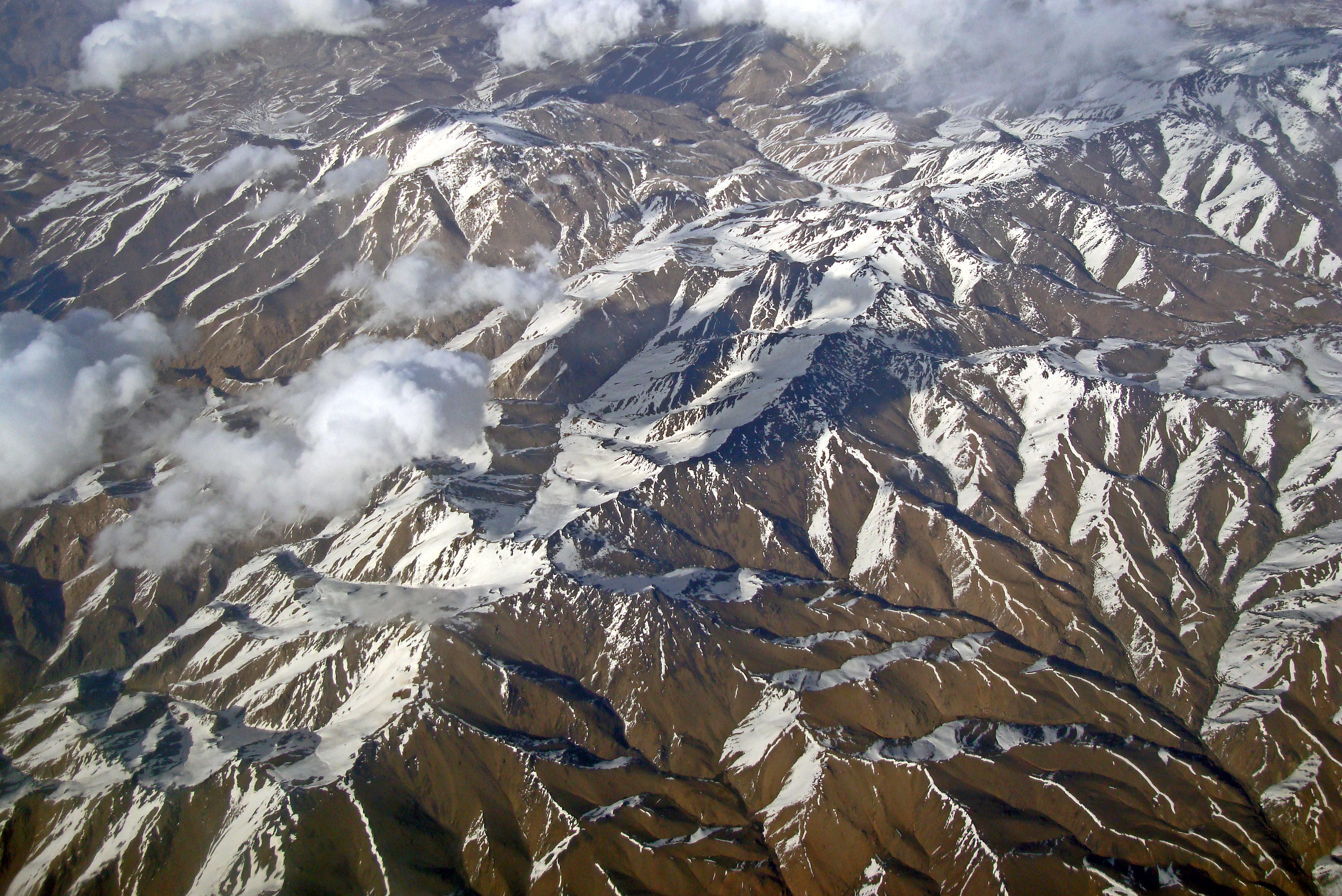 Of course, individual flight paths vary, so it is not easy – especially after a long passage of time – to determine exactly what one was seeing out of the window. Nevertheless, the map shows that this route passes over the Central Highlands to the west of Kabul. These mountains are an extension of the Hindu kush system and diminish in height as they stretch westward. Nevertheless, toward the middle, near Kabul, they still tower up from 4,500 to 6,000 meters; whilst further west, they attain heights of 3,500 to 4,000 meters.