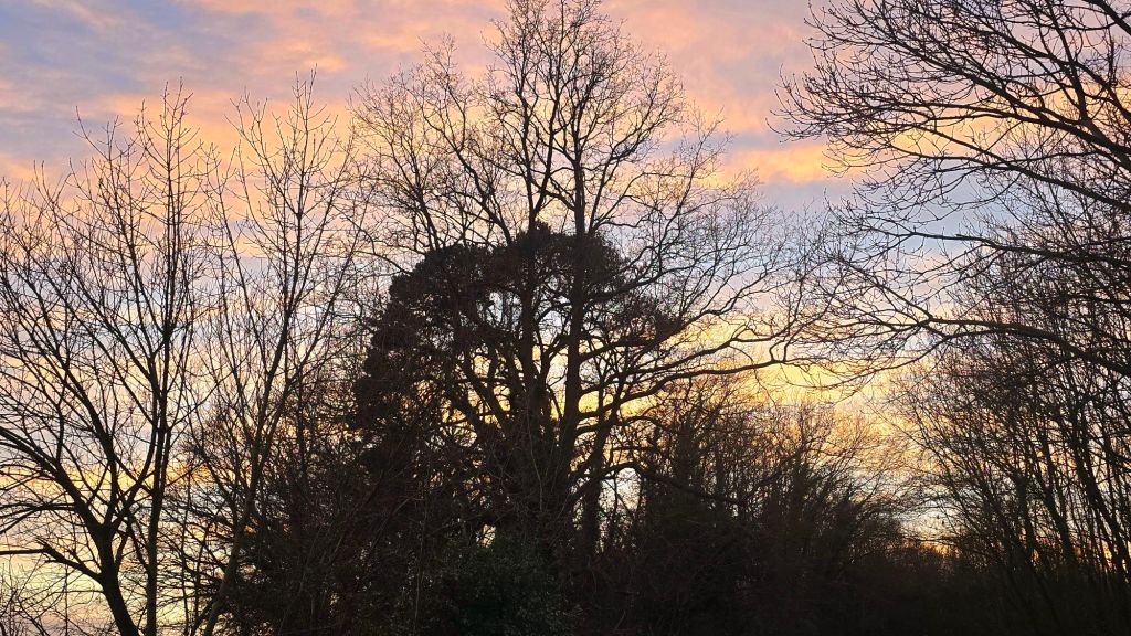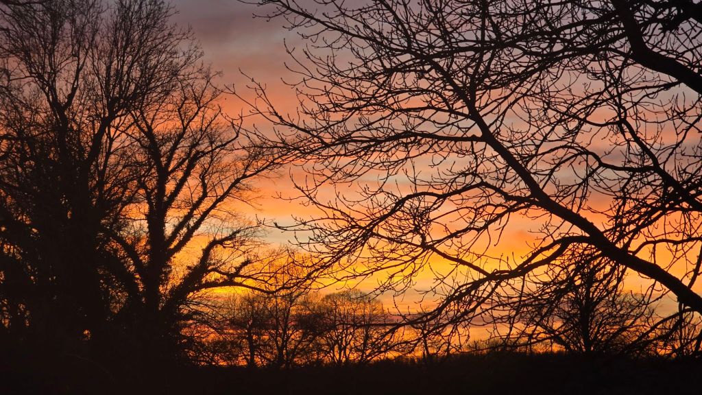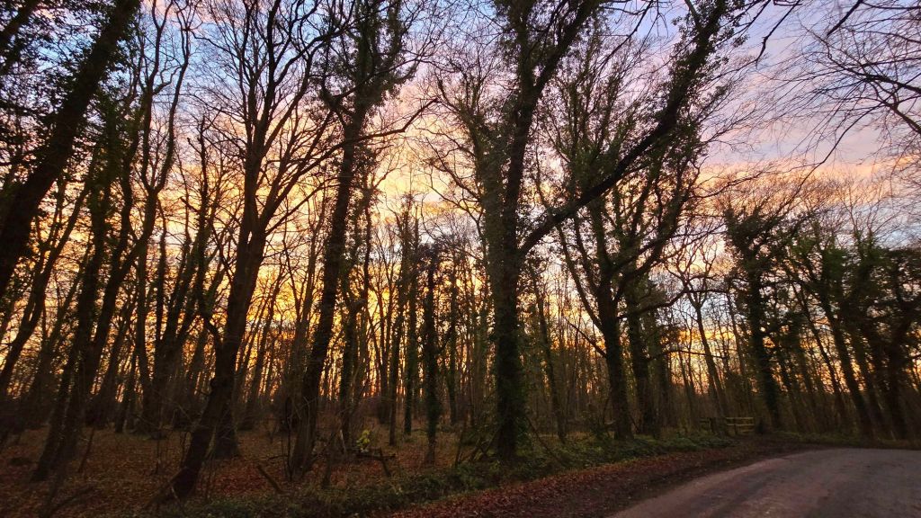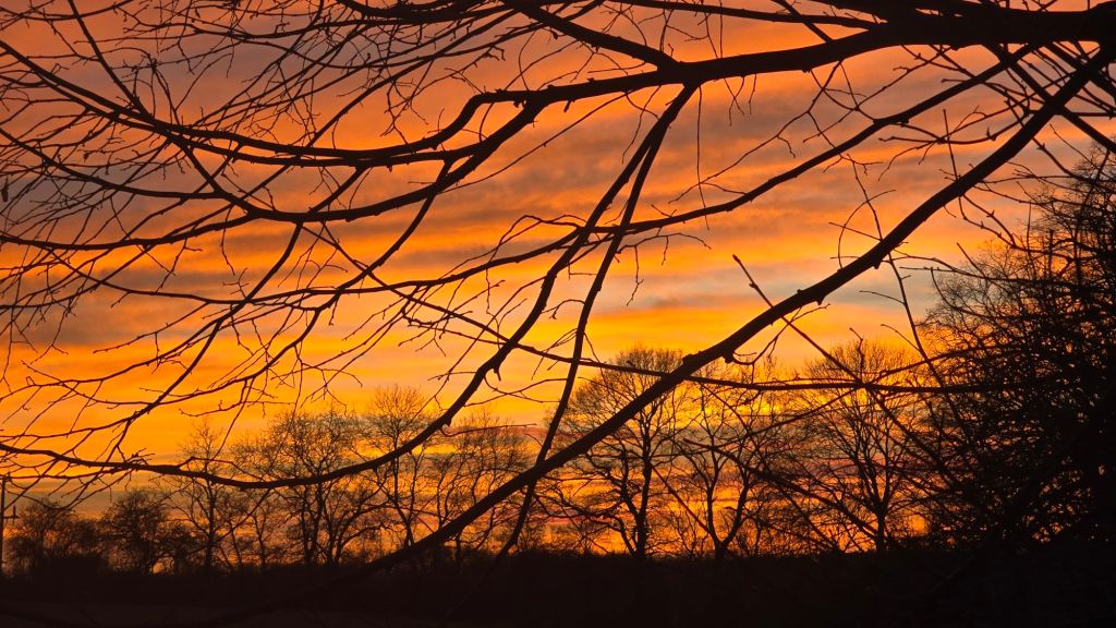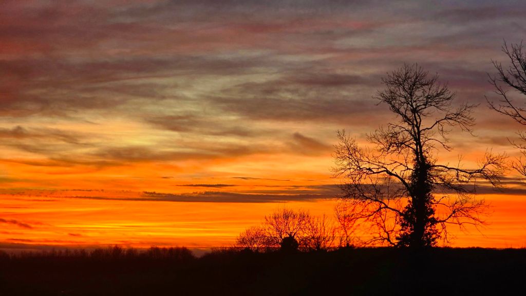 Follow me on my walk this evening as the sunset (at 15:53) builds to a climax. Photos, not words. Sharnbrook, Bedfordshire, UK.