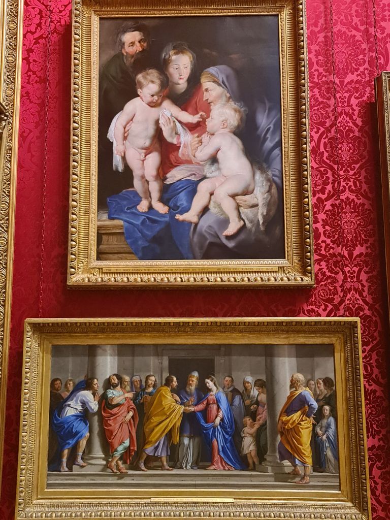 The painting was previously believed to be by Leonardo and may be based on an original design by him. There are numerous versions of this picture: the composition was enormously famous. However, there was nobody looking at it when I passed by! If it had been by the masters hand, rather than just being by a leading followers of de Vinci, I expect that there would be a gaggle of people taking selfies in front of it!