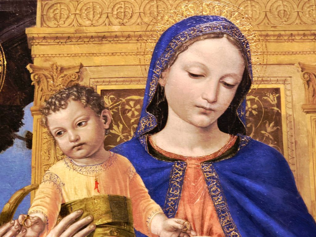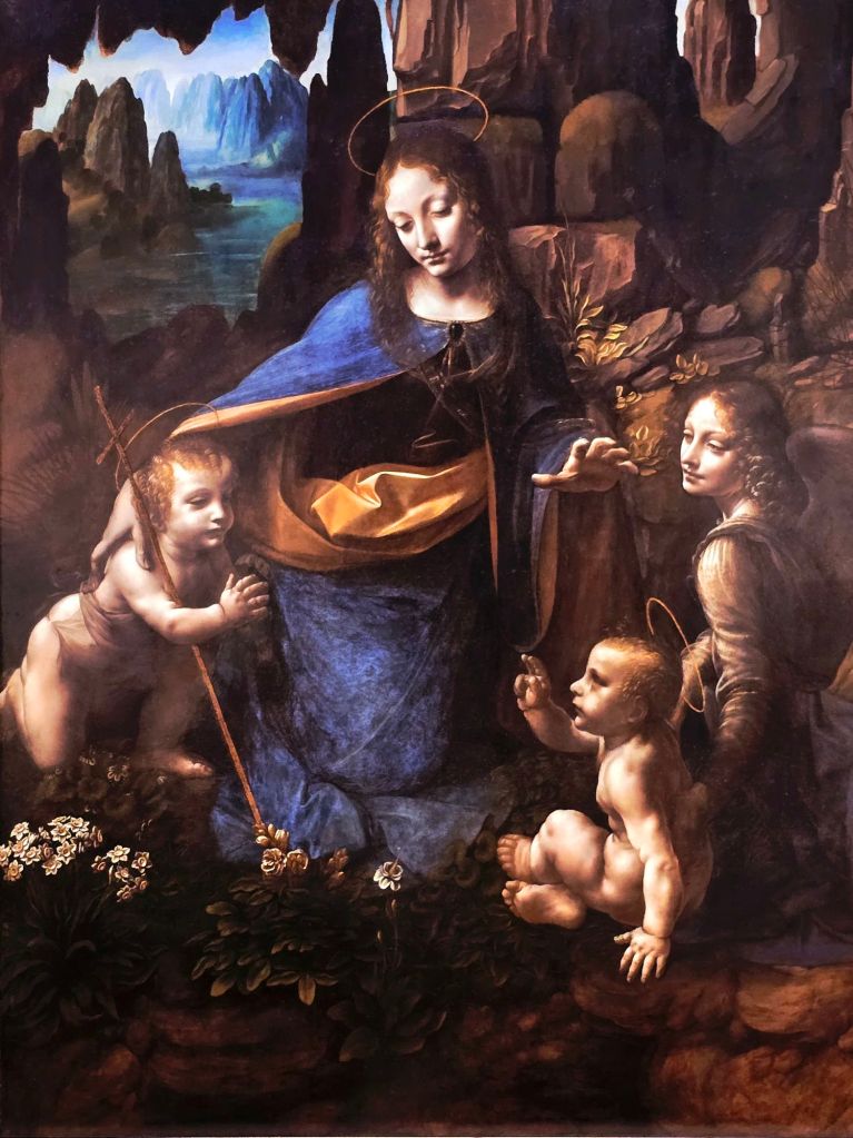 The National Gallery houses the Virgin of the Rocks, part of a large, elaborate altarpiece made for the church of San Francesco Grande, Milan, to celebrate the Immaculate Conception of the Virgin Mary. Another, earlier version, is held in the Louvre in Paris.