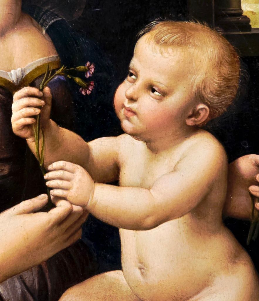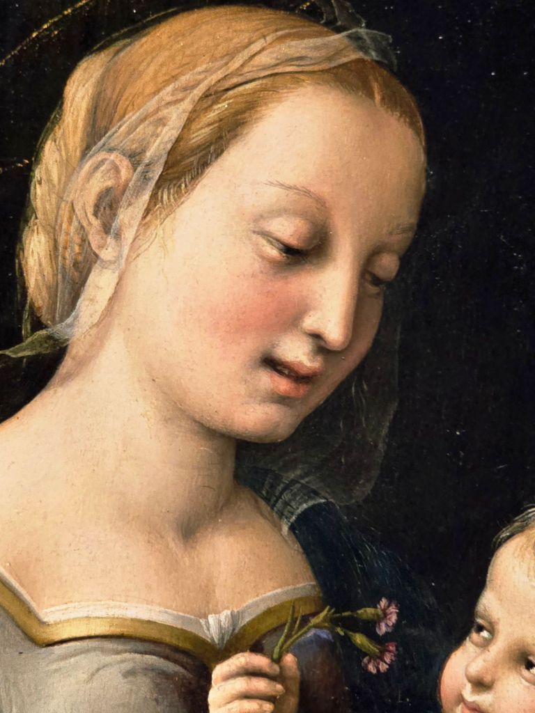 One of the greatest artists of the High Renaissance, and my favourite painter, is, of course, Raphael, or Raffaello Sanzio da Urbino to give him his Italian name. This painting is freely based on Leonardo da Vinci’s Benois Madonna (in the State Hermitage Museum, St Petersburg, an amazing place I was fortunate enough to visit in 1990).