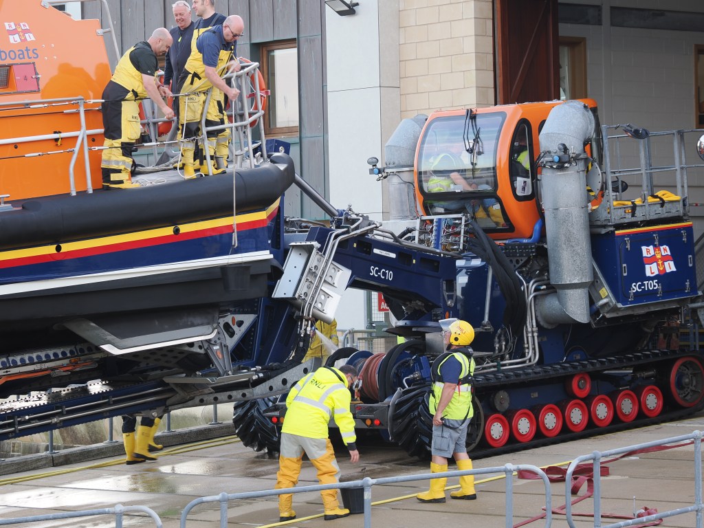 The lifeboat is launched and recovered using a Shannon Launch and Recovery System (SLARS): a tracked vehicle which transports the lifeboat from the boathouse to the sea, tilts to act as a slipway for launching, and then uses a powerful winch to haul the boat back onto the carriage for recovery.